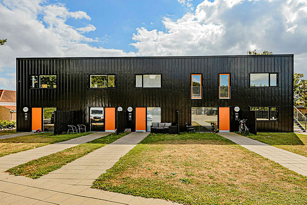 Alle boliger i stueplan har egen terrasse mens ungdomsboligerne på 1. sal har adgang via en udvendig trappe, hvis øverste plan kan bruges som altan.